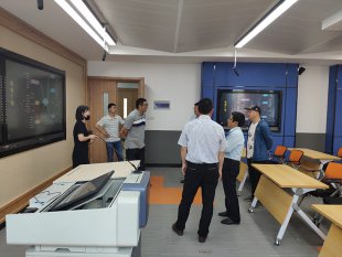 2020年6月10日下午,盐城工业职业技术学院蔺俊副校长一行5人在相关人员的陪同下参观了我司承建的江苏食品药品职业技术学院智慧教室、微课教室、多媒体教室、学业支持中心等项目